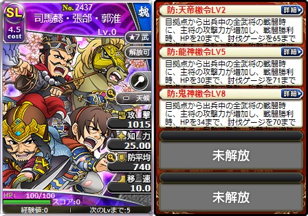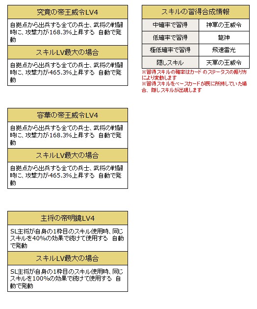 「帝軍の天勅令LV10」「主将の帝明鏡LV4」
