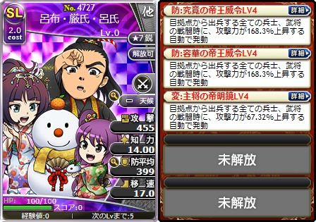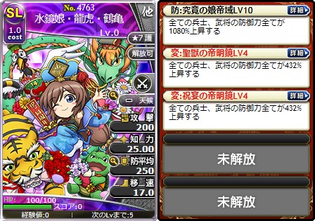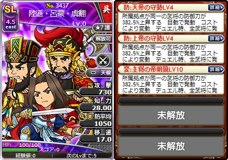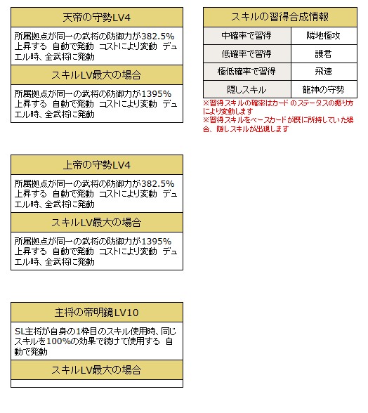「天帝の守勢LV4」「上帝の守勢LV4」「主将の帝明鏡LV10」を所持した