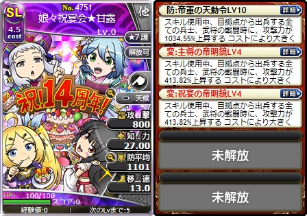 「祝宴の帝明鏡LV4」を所持した「No.4751 SL娘々祝宴会★甘露」、