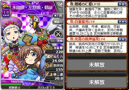 「究竟の鋭神遠攻LV4」を所持した「No.4752 SL水鏡娘・左慈娘・鶴爺」、