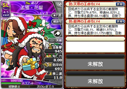 | ブショーダスSPmini【クリスマス】の レアリティSLの武将カード紹介 |