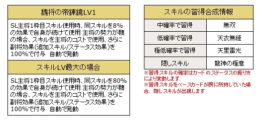 ・該当の変化系スキルを所持した武将と同じレアリティの主将にセットした場合にのみ