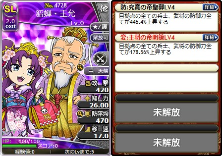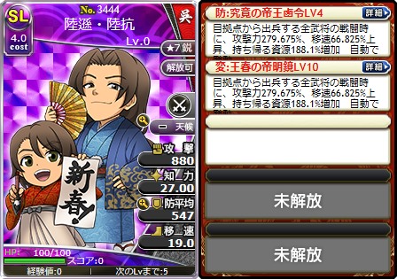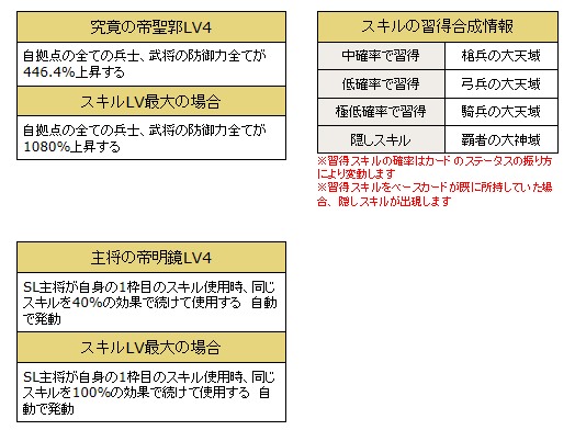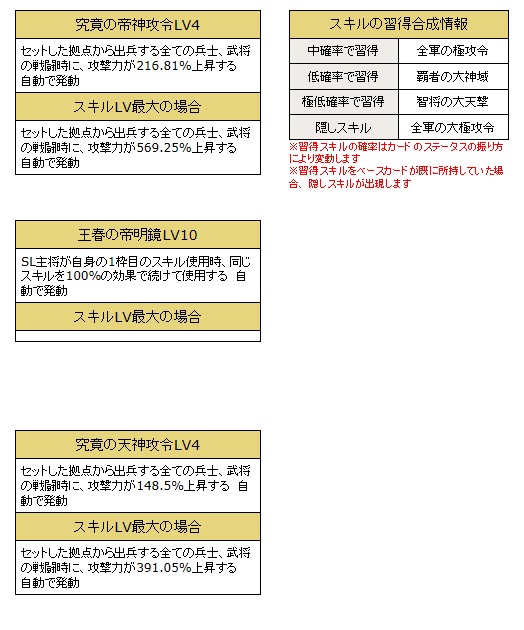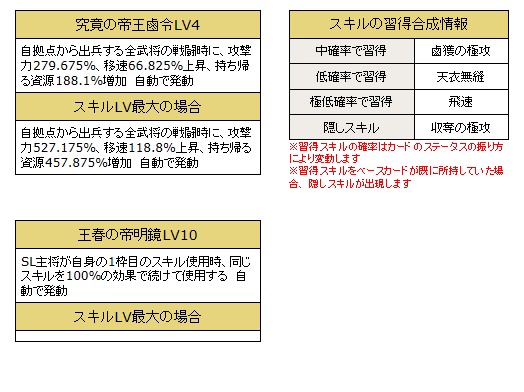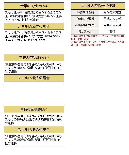 「帝軍の天勅令LV4」「王春の帝明鏡LV10」