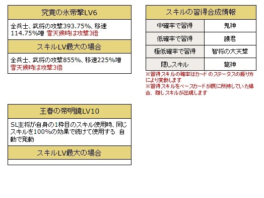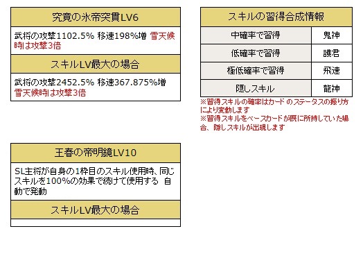 ・紹介している武将のスキルの効果値等は、該当の武将が所持している場合の効果値です。