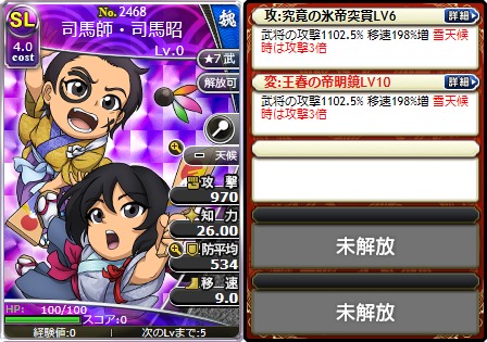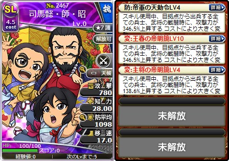「主将の帝明鏡LV4」を所持した「No.2467 SL司馬懿・師・昭」などが