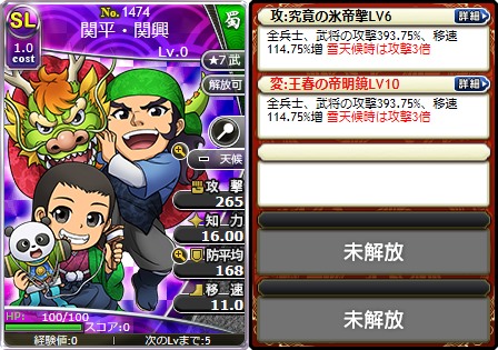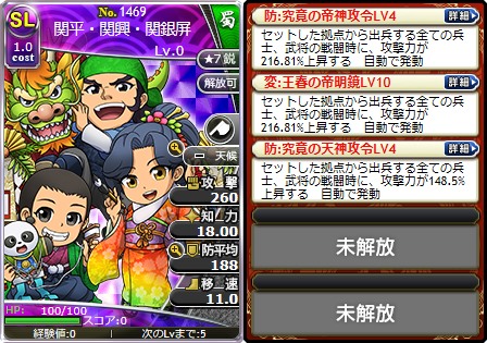 「究竟の天神攻令LV4」を所持した「No.1469 SL関平・関興・関銀屏」、