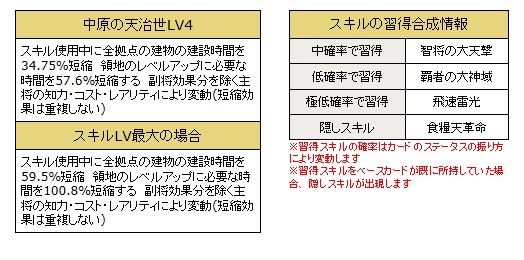 ・紹介している武将のスキルの効果値等は、該当の武将が所持している場合の効果値です。