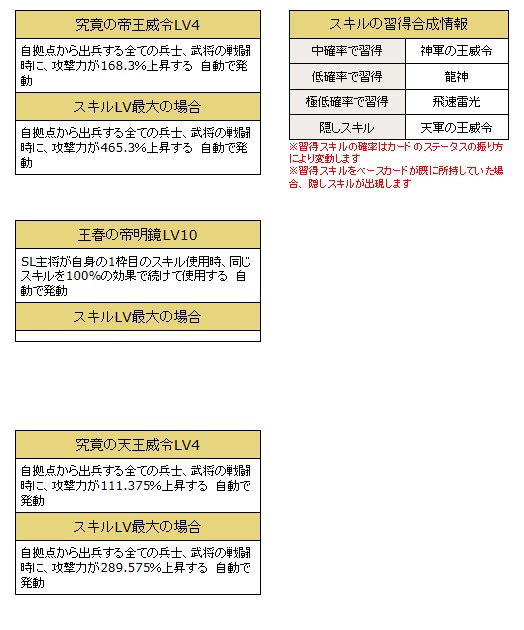「究竟の帝王威令LV4」「王春の帝明鏡LV10」