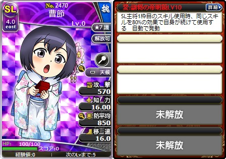 ・該当の変化系スキルを所持した武将と同じレアリティの主将にセットした場合にのみ