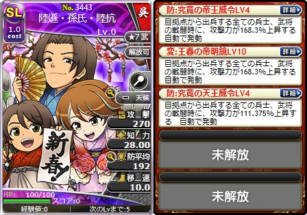 「究竟の天王威令LV4」を所持した「No.3443 SL陸遜・孫氏・陸抗」などが
