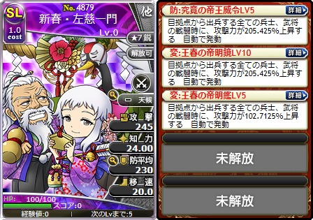 「王春の帝明鑑LV5」を所持した「No.4879 SL新春・左慈一門」、