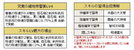 同一スキルであっても武将のコスト、スキルLV、ステータス等により効果値が異なる場合があります
