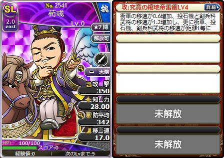 「究竟の縮地帝雷衝LV4」を所持した「No.2541 SL荀彧」が