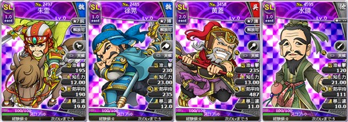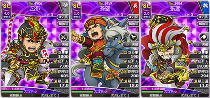 武将カードはLv0、ステータスポイントは割り振りしていない状態で表示されています。