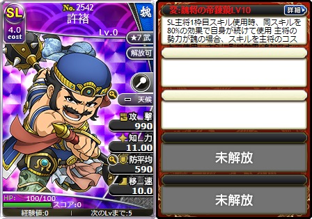 「魏将の帝錬鏡LV10」を所持した「No.2542 SL許褚」、