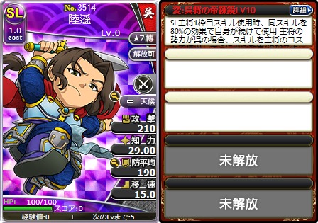 「呉将の帝錬鏡LV10」を所持した「No.3514 SL陸遜」、