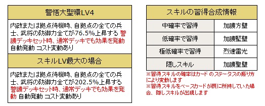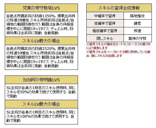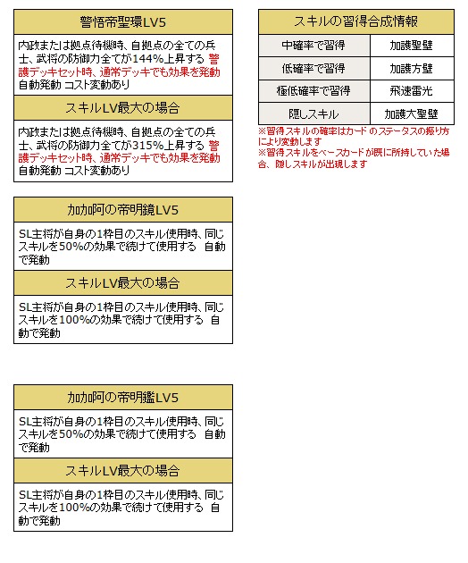 ・変化系スキルを所持している武将カードの1枠目のスキルが発動した際、同じ効果で発動します。