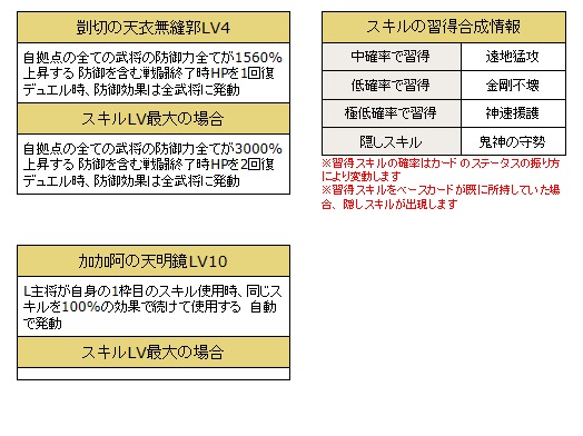 ・紹介している武将のスキルの効果値等は、該当の武将が所持している場合の効果値です。