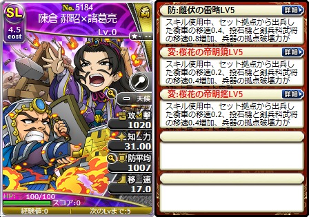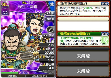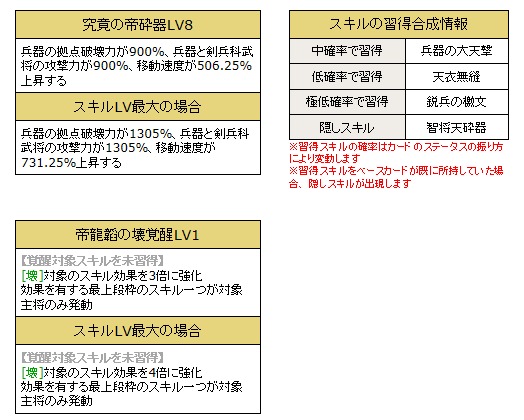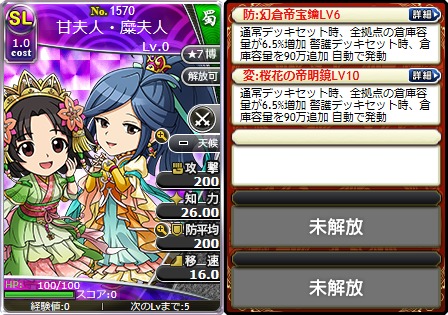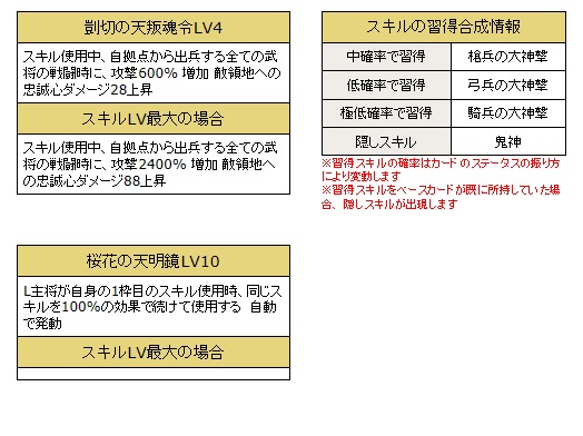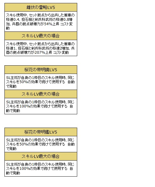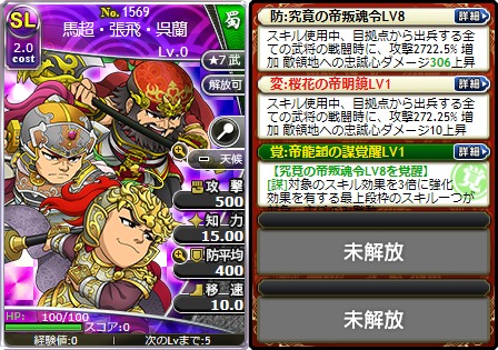 「桜花の帝明鏡LV1」「帝龍韜の謀覚醒LV1」を所持した