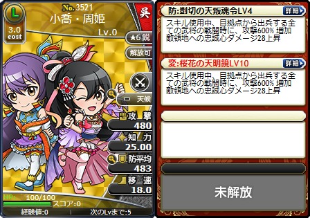 ・変化系スキルを所持している武将カードの1枠目のスキルが発動した際、同じ効果で発動します。