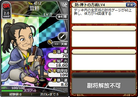 「神卜の方術LV4」を所持した「No.4312 SR管輅」など