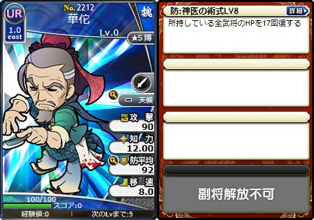 「神医の術式LV8」を所持した「No.2212 UR華佗」、