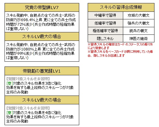 「究竟の帝聖錬(くっきょうのていせいれん)LV7」「帝龍韜の塞覚醒LV1」を所持した