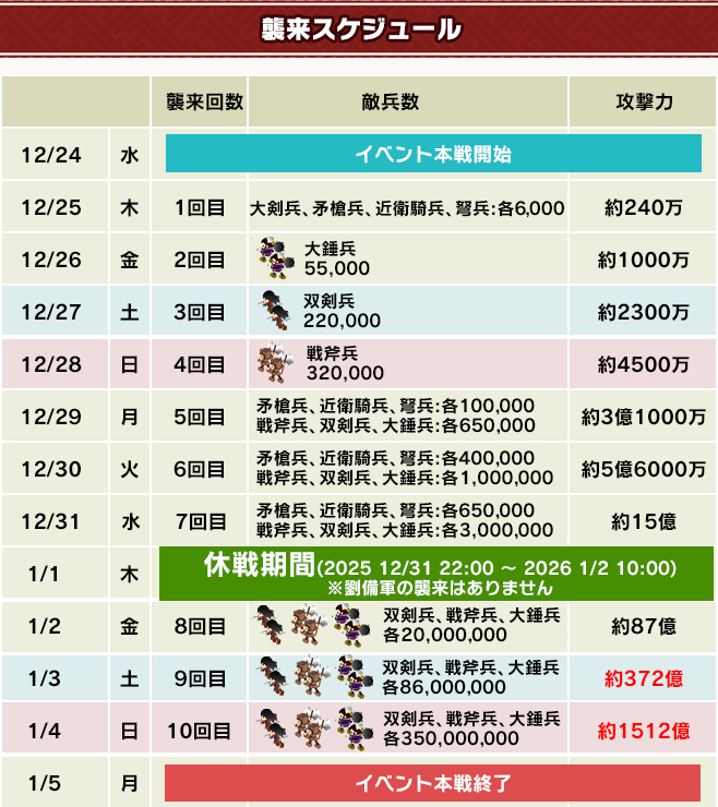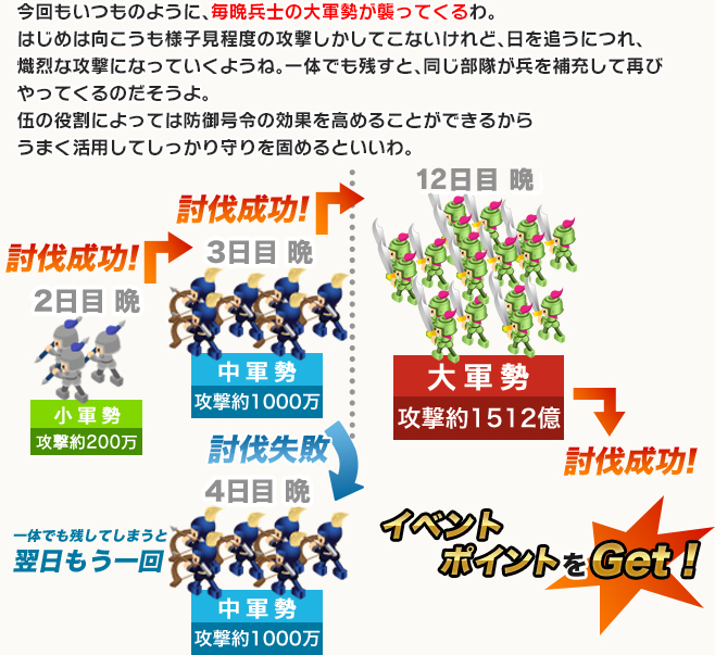 | 強襲阻止 其十 | 防衛スコアを40億以上にする | ★14 | 600PT 玉璽チケット ×1 |