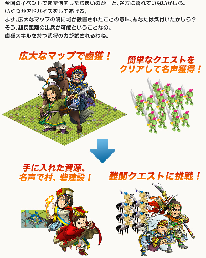 | 単騎駆け 其十二 | 1回の武将のみ出兵で、 距離750以上離れた★9空き地を全滅 |