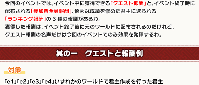 | カテゴリ | クエスト名 | 内容 | 難易度 | カードカスタムポイント &アイテム報酬 |