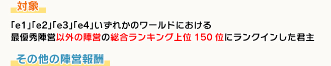 | 攻撃系 | 敵軍討伐 其十五 | 攻撃ポイントを160億以上にする | ★15 | 700PT No.4595 SL水鏡 ×1 |