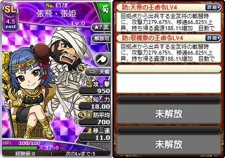 同じ武将カードを引いた場合でもスキルLVが異なる場合もございます。
