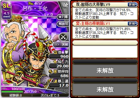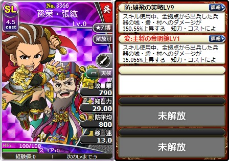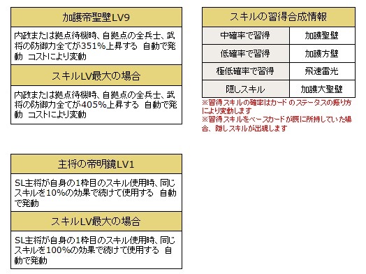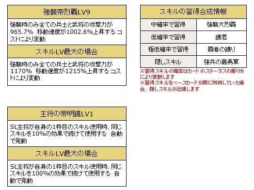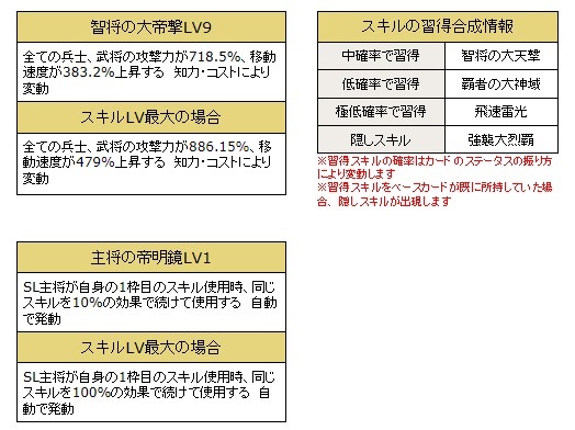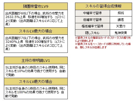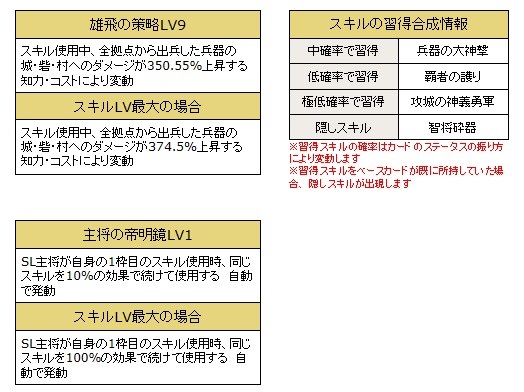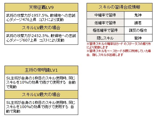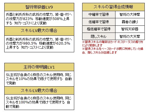 また、レアリティSLの武将カードは1枠目の初期所持スキルがLV9となっております!