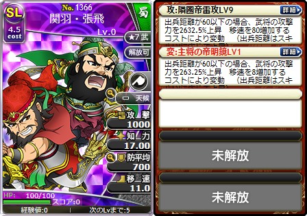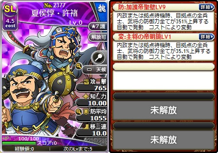 ・初期所持スキルLVより高いスキルLVで排出された武将カードを「カード倉庫」へ移動させた場合、