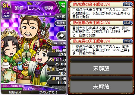 「究竟の天王威令LV4」を所持した「No.1384 SL劉備・甘夫人・劉禅」などが