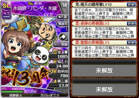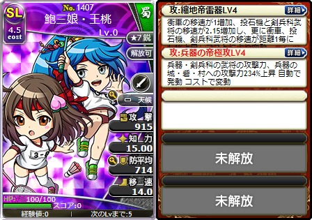 「玉帝混交LV4」「鋭兵の神遠攻LV8」を所持した