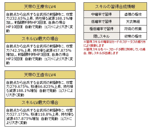 「天帝の王療令LV4」「天帝の王鹵令LV4」を所持した