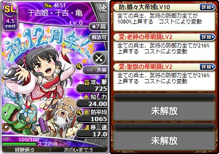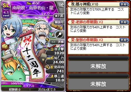 ・初期所持スキルLVより高いスキルLVで排出された武将カードを「カード倉庫」へ移動させた場合、
