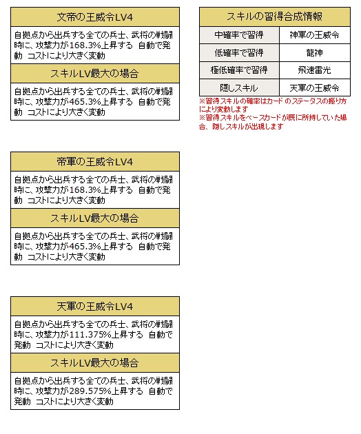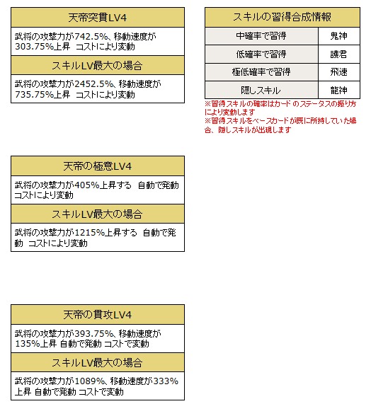 レアリティSL、Lの武将カードはスキルがLV10の状態で排出されます!
