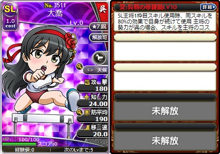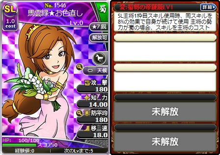 ・該当の変化系スキルを所持した武将と同じレアリティの主将にセットした場合にのみ