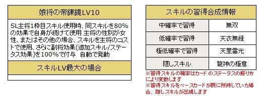 ・スキルLVに応じた反映率によって発揮されるスキルの効果値は変動します。