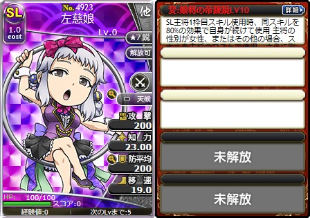 「娘将の帝錬鏡LV10」を所持した「No.4923 SL左慈娘」、