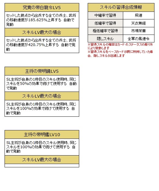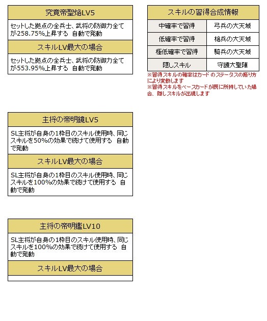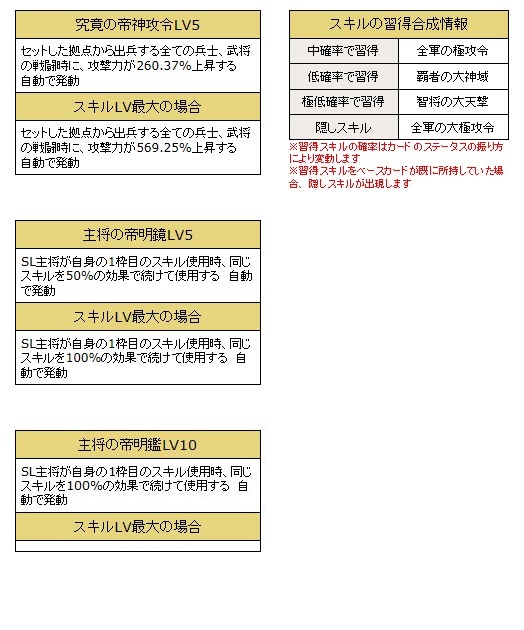 ・変化系スキルを所持している武将カードの1枠目のスキルが発動した際、同じ効果で発動します。