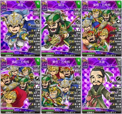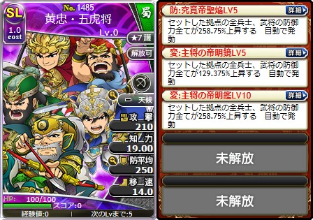 「主将の帝明鑑LV10」を所持した「No.1485 SL黄忠・五虎将」などが再登場です。