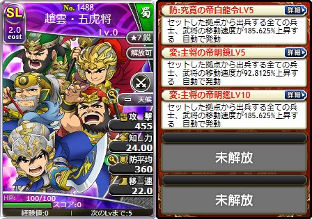 「主将の帝明鑑LV10」を所持した「No.1488 SL趙雲・五虎将」、