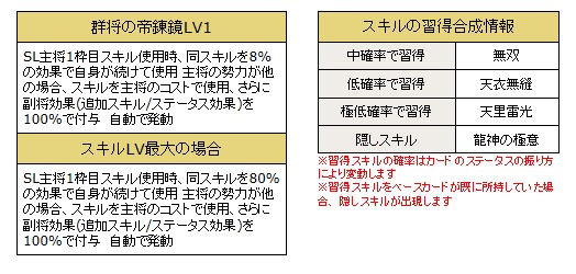 ・該当の変化系スキルを所持した武将と同じレアリティの主将にセットした場合にのみ