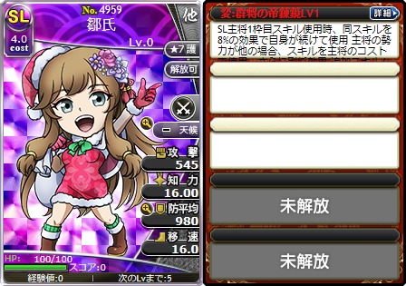 該当の変化系スキル所持副将のコストやステータス、ポイントで発動時の効果値が決まります。
