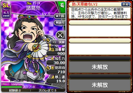 「天帝檄令LV2」を所持した「No.1519 SL諸葛亮」がゲットできます!