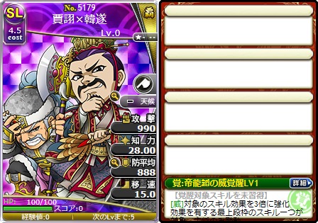 新カード「No.5179 SL賈詡×韓遂」や