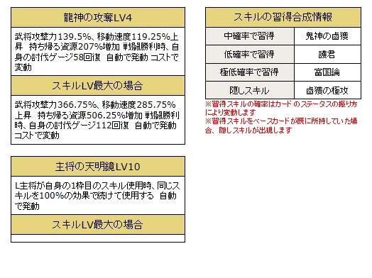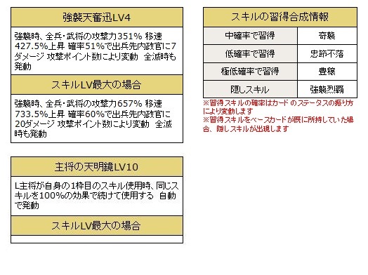 告知内で紹介している各武将カードのスキルLVは初期所持スキルLVです。